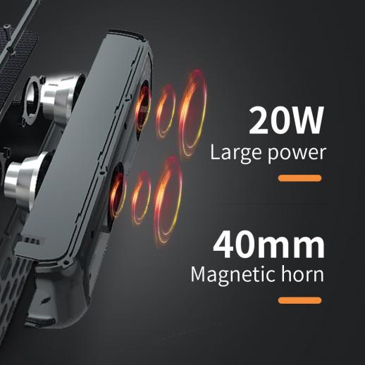 - * 10 watt hög effekt, dubbla högtalare. Två 40 MM högtalare. Total harmonisk distorsion på mindre än 1% med kraftfull stereo och oberoende bas