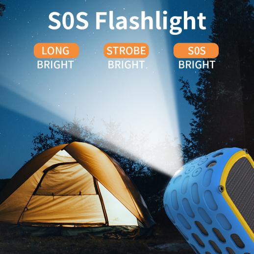 - * Vattentät IPX6, stötsäker, dammtät. Snygg, kompakt och lätt att bära. Inbyggd LED-ficklampa. Avtagbara karbinkrokar i aluminium och kardborreband ingår för att hjälpa dig att bära din högtalare vart du än går