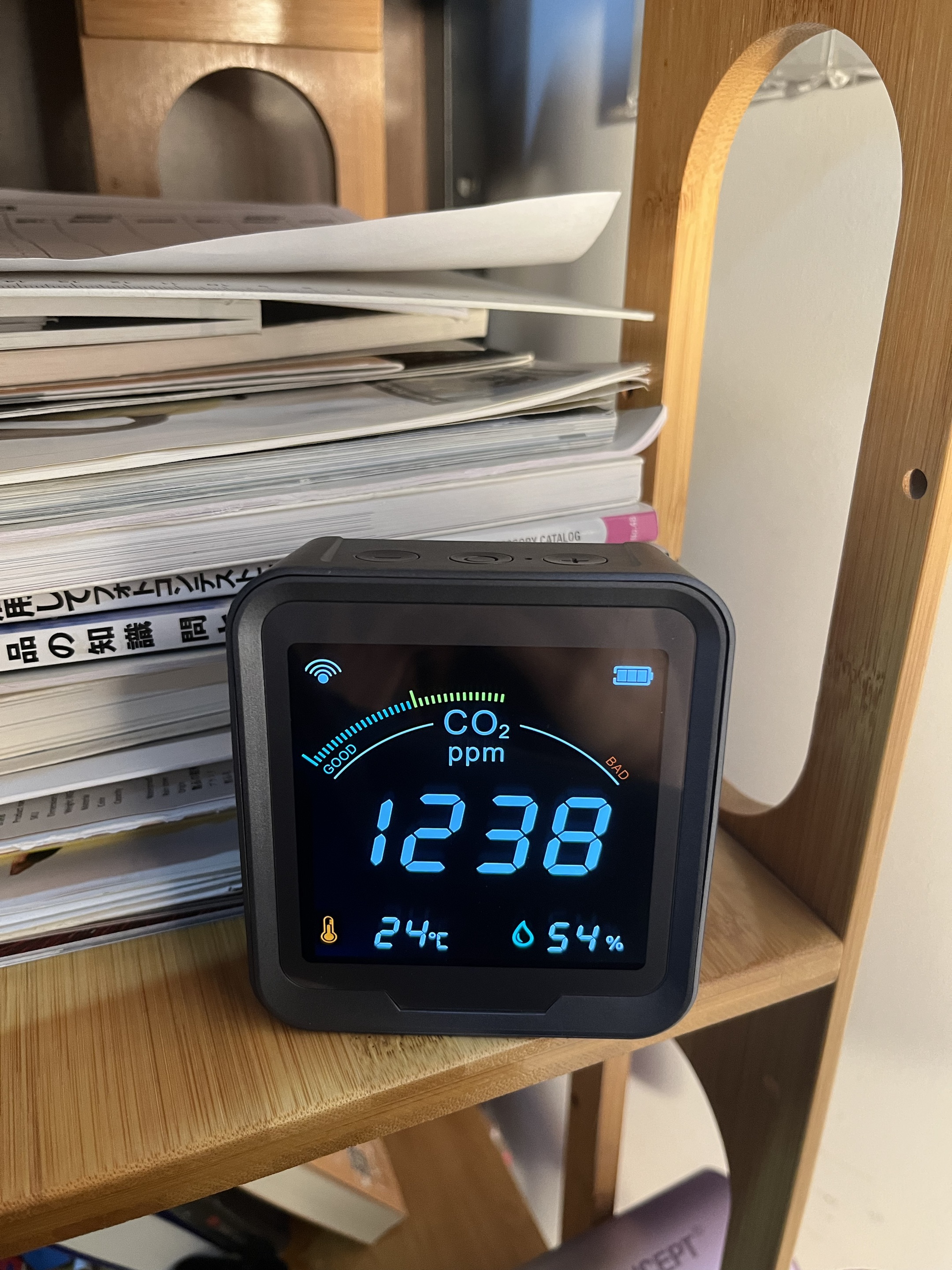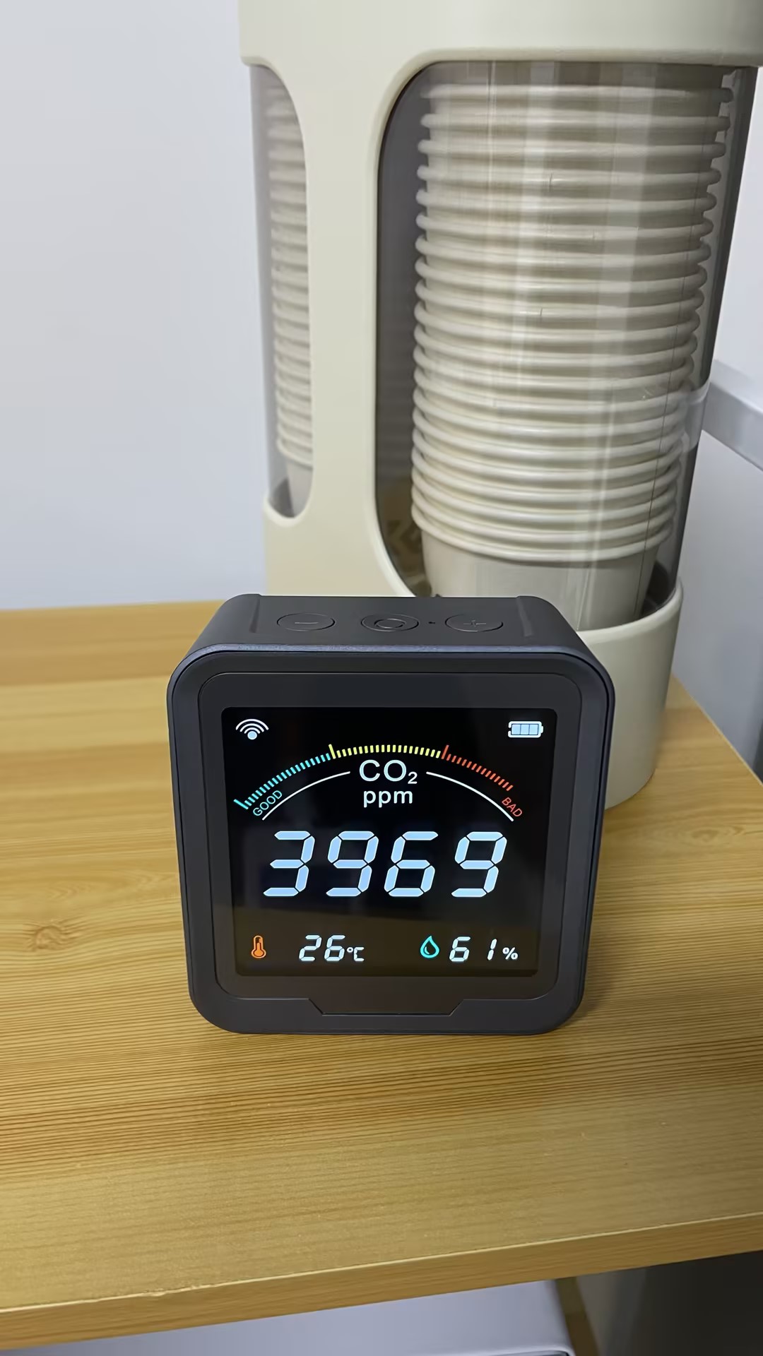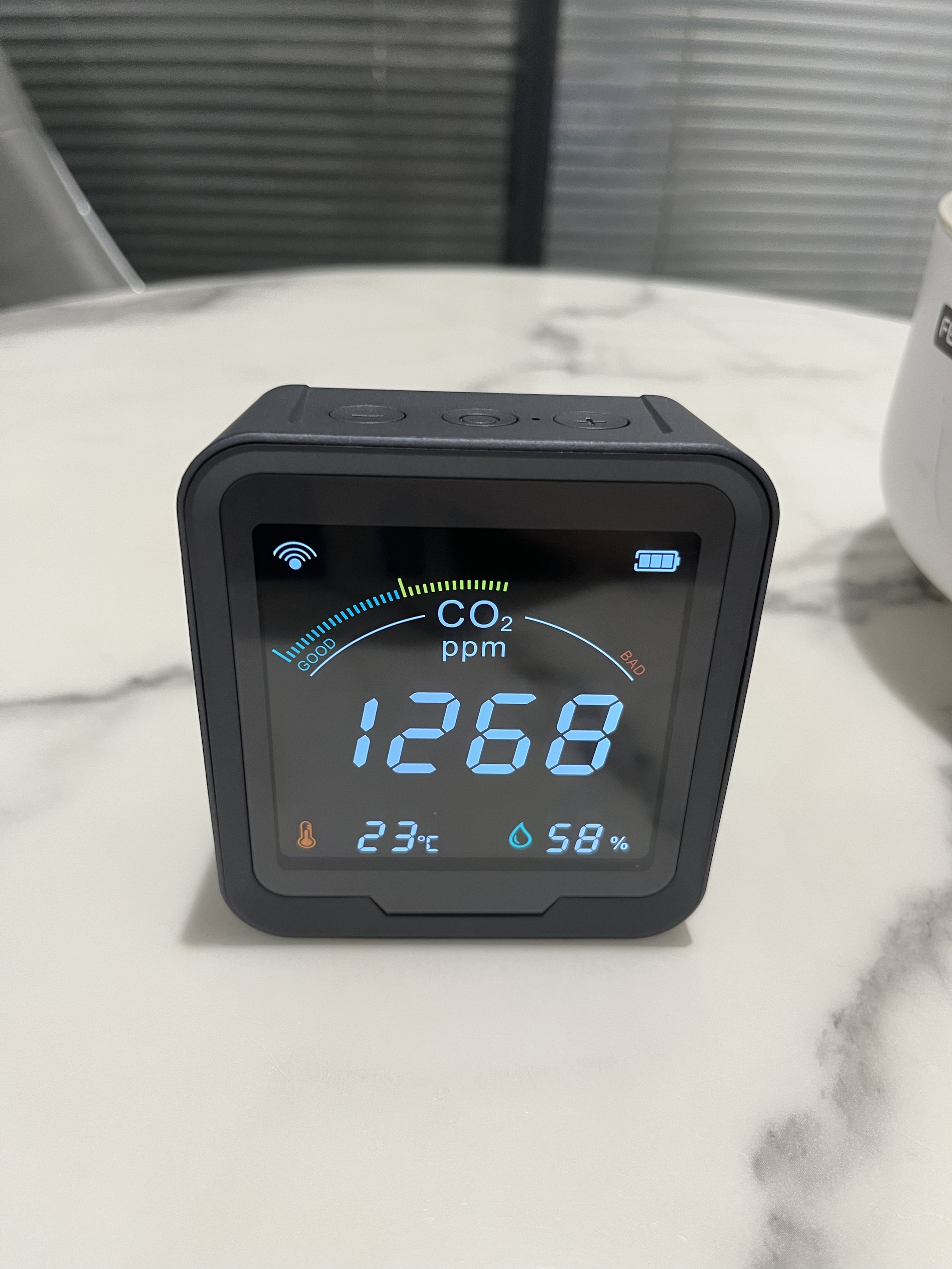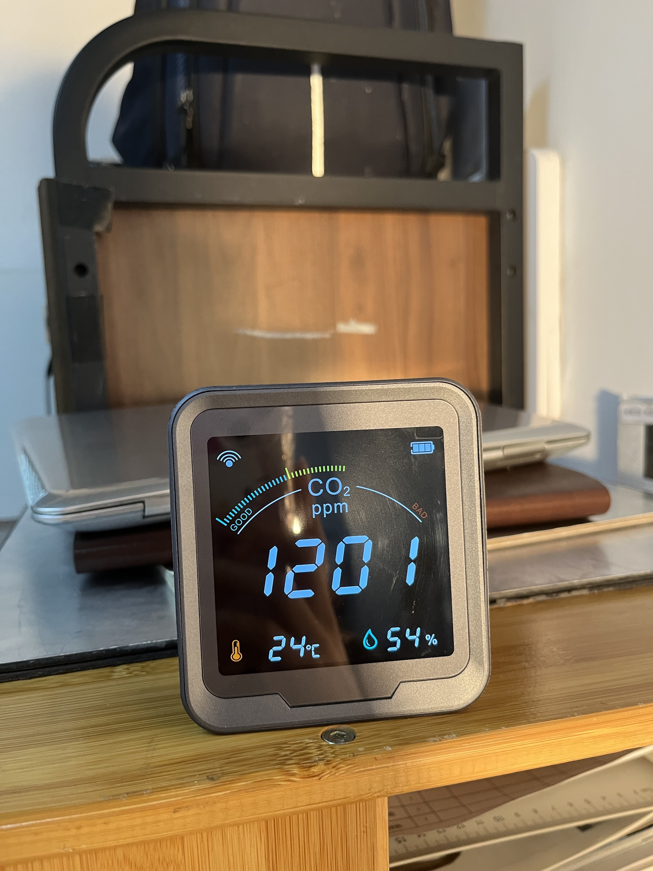 Köpte den här CO2-sensorn till mitt hus och den fungerar utmärkt. Skärmen är ljusstark och mycket lätt att förstå alla avläsningar. När CO2-nivån går upp, skulle jag slå på min luftrenare och jag kan se avläsningen sjunka. Detta är riktigt bra om du vill övervaka luftkvaliteten i ditt hus. Den har även temperatur- och fuktighetssensor. Wifi-funktionen är ett riktigt trevligt tillägg.