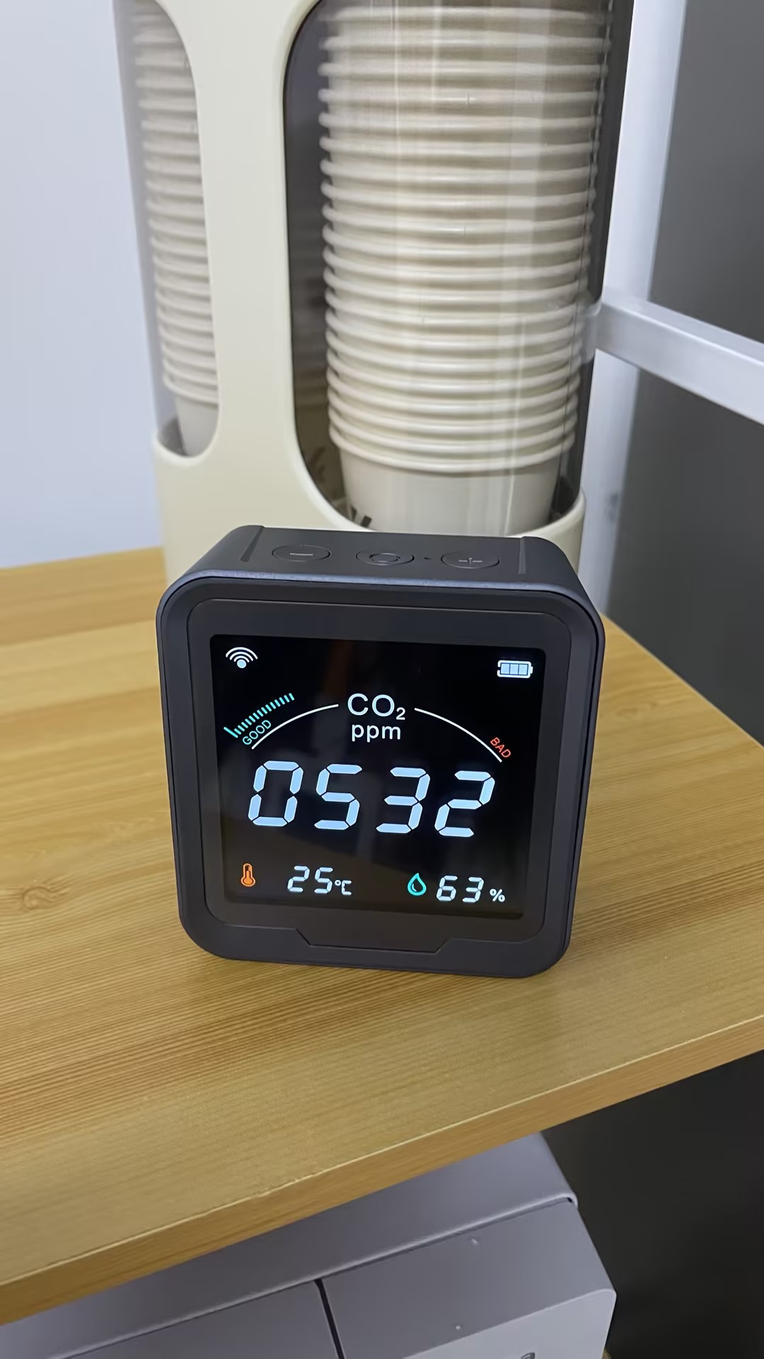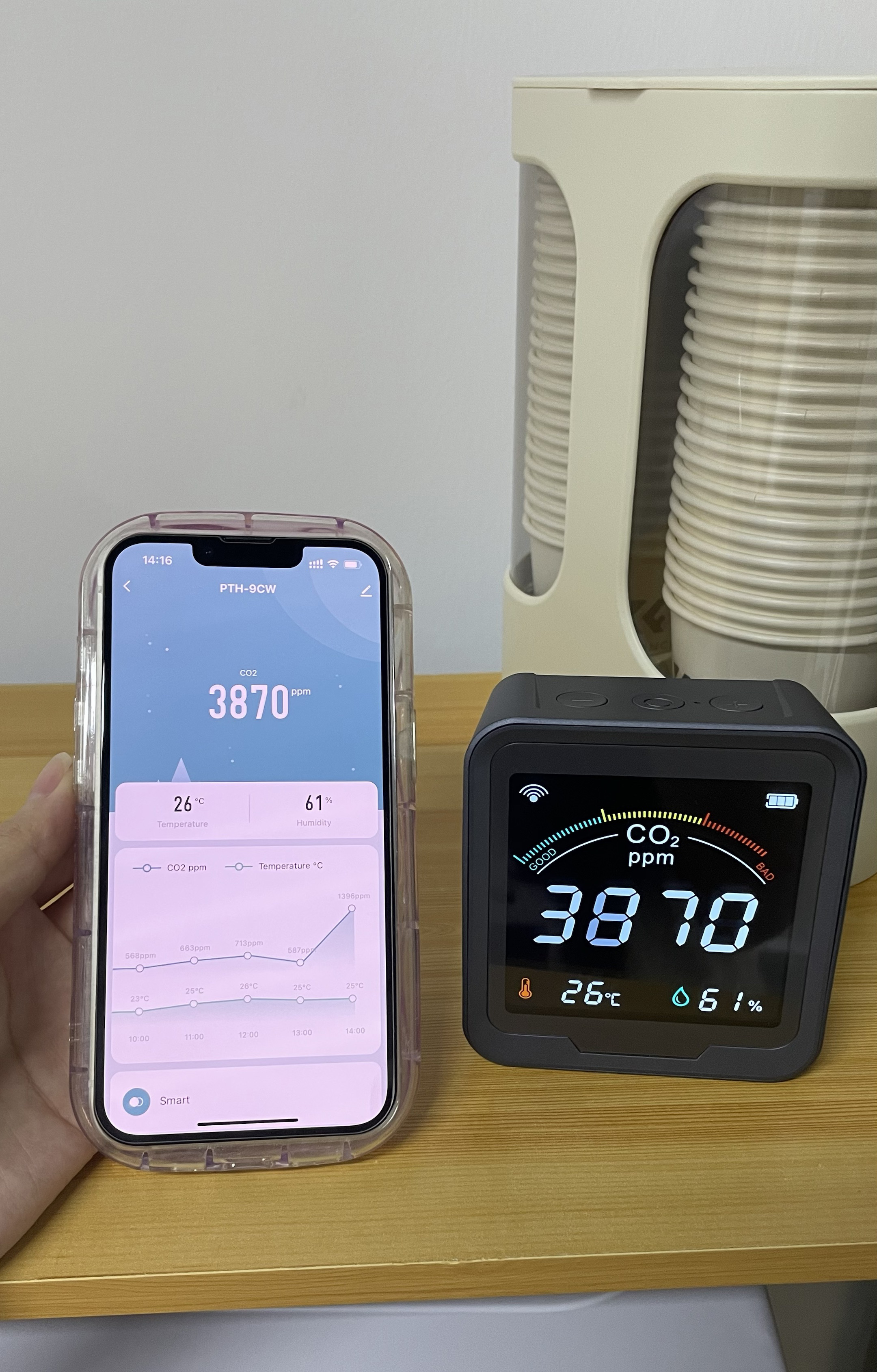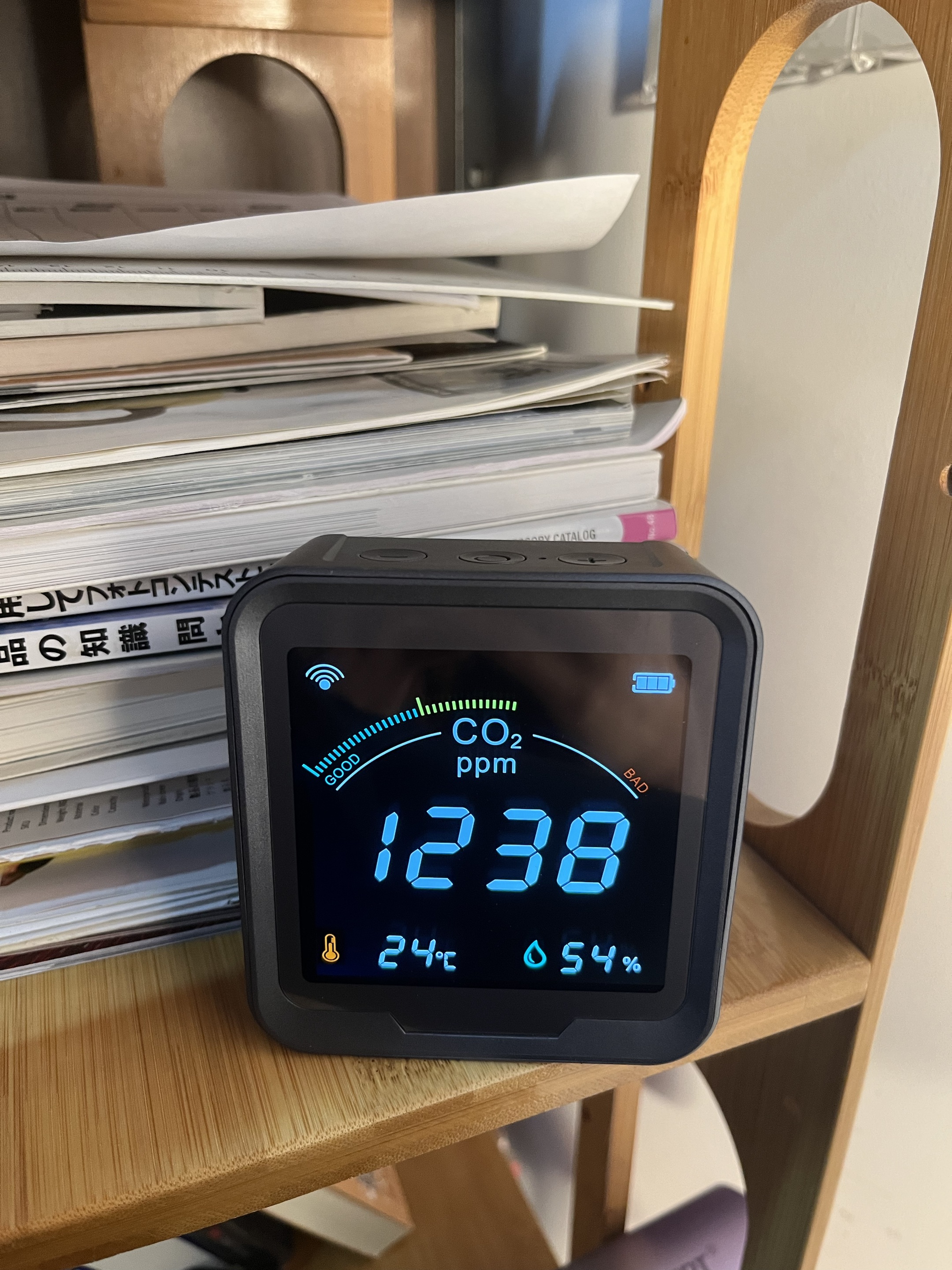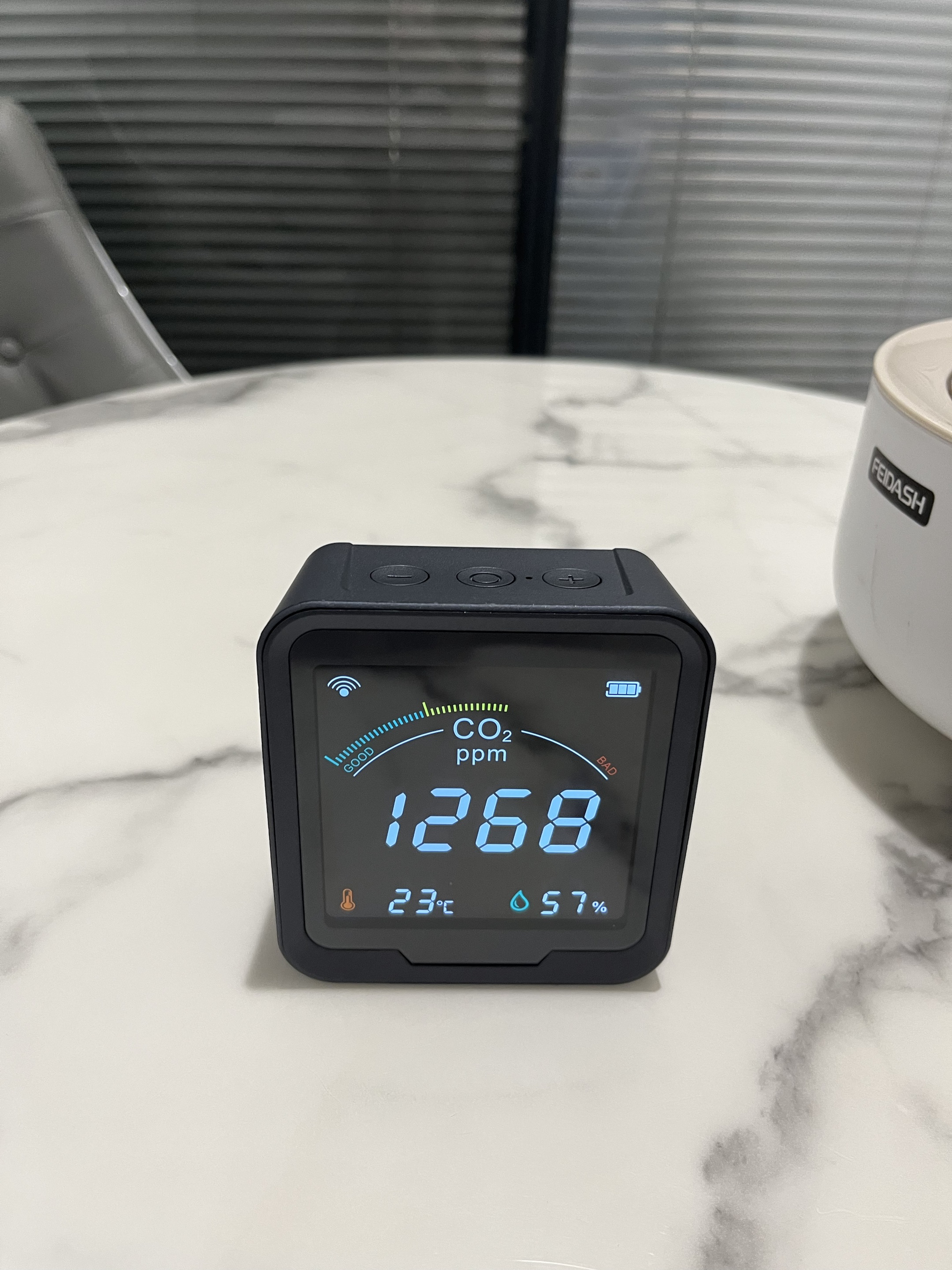 Köpte den här CO2-sensorn till mitt hus och den fungerar utmärkt. Skärmen är ljusstark och mycket lätt att förstå alla avläsningar. När CO2-nivån går upp, skulle jag slå på min luftrenare och jag kan se avläsningen sjunka. Detta är riktigt bra om du vill övervaka luftkvaliteten i ditt hus. Den har även temperatur- och fuktighetssensor. Wifi-funktionen är ett riktigt trevligt tillägg.