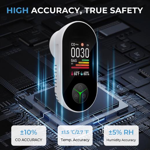 - Skydda ditt hem och arbetsplats med vår kolmonoxidgasdetektor. Den upptäcker kolmonoxid och brandfarliga gaser, samtidigt som den övervakar temperatur och luftfuktighet i realtid. Perfekt för vardagsrum, kök, sovrum, kontor, garage, lager, husbilar, hotell och mer. Snabba, pålitliga larm håller dig säker dygnet runt.