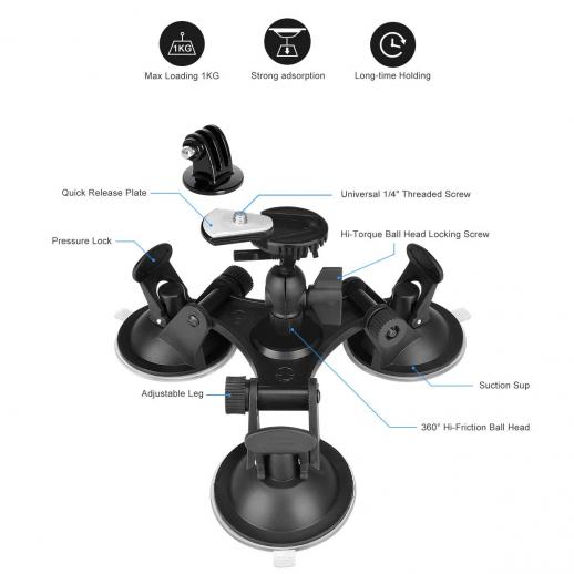 GoPro 3-kopps Action Camera Sucker Mount Action Kamera Bil Vindrute Kåpa Dörr Baklucka Fäste/Med kulhuvud Kompatibel GoPro Sony DJI OSMO Action Akaso Apeman YI Action Camera Bilfäste