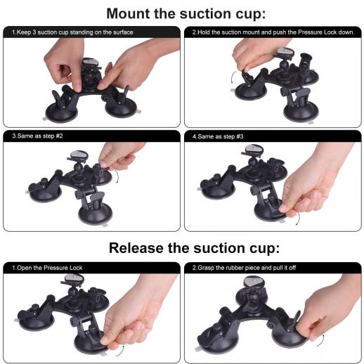- * 【Stabilitet och säkerhet】: Unik sugdesign med tre koppar med 3 vakuumsugbaser som kan fästas ordentligt på vilken slät yta som helst och stanna på plats även under höghastighetsrörelse. OBS: För DSLR:er rekommenderar vi att du använder den med långsam rörelse eller rörelse.