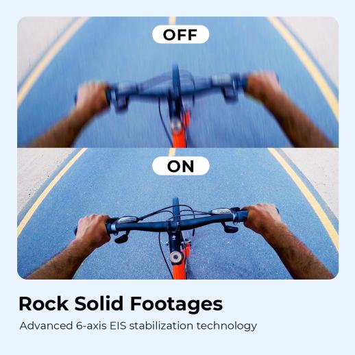 Det kan vara svårt att ta bilder i snabba eller dynamiska aktiviteter, men vår 4K-actionkamera gör det enkelt med sin avancerade 6-axliga EIS-stabiliseringsteknik. Den övervakar kontinuerligt alla rörelser och skakningar och jämnar ut komplexa rörelser och skift, vilket säkerställer att videon förblir stadigt och flytande, vilket görs i renare och mer professionella bilder. Nu kan du enkelt skapa högkvalitativt innehåll med mindre behov av återtagning eller efterproduktionsarbete.