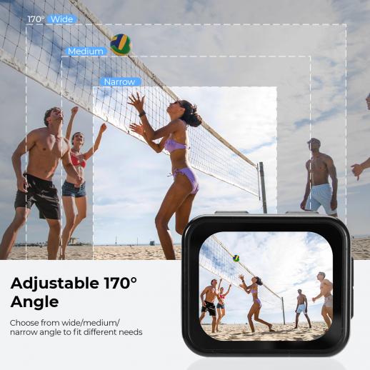 Vår vattentäta actionkamera har en maximal synvinkel på 170°, fångar mer av din omgivning och gör dina bilder ännu mer fantastiska – perfekta för aktiviteter i öppna områden som fallskärmshoppning, skidåkning med mera. Dessutom kan du enkelt justera synvinkeln till bred, medium eller smal för att passa dina behov.