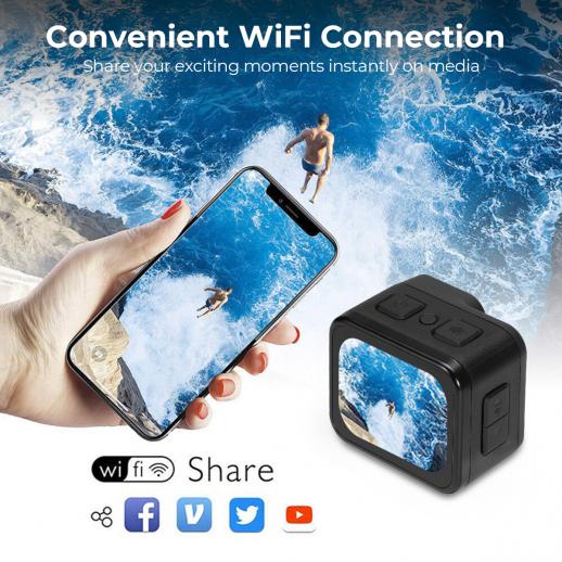 Få mer problem med MicroSD-kort och läsare - vår undervattensactionkamera har en WiFi-anslutning, ansluten bara till telefonen, och du kan nu förhandsgranska och fjärrstyra kameran från enheten och enkelt dela dina fantastiska bilder med dina vänner och familjer.
