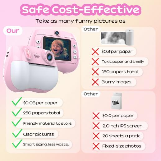 - ㆍSäker : Denna barns ögonblickskamera är utskriftsvänlig utan toner, ingen app, inget WiFi och ingen Bluetooth krävs, enkel, snabb och effektiv utskrift, perfekt för barn i åldern 3-12 år.