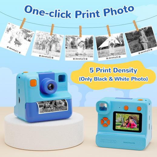 Ja, Kentfaith barnkamera instantkamera använder bläckfri termisk utskriftsteknik för att skriva ut svartvita foton. Och barn kan DIY sina foton.