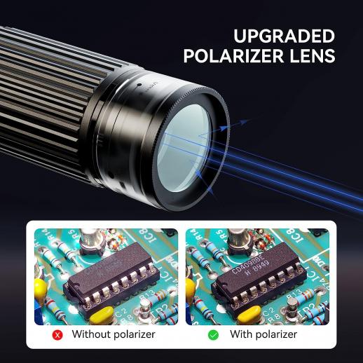 - * Mikroskop med uppgraderad polariserande lins: Polariserande filter är generellt mycket effektivt för att förbättra den övergripande färgmättnaden och buffra fotokvaliteten. Med dessa intelligenta element behöver du inte oroa dig för dålig färgton och oklar kontrast. Lätt att observera reflekterande föremål som SMD-komponenter, diamanter och metaller;