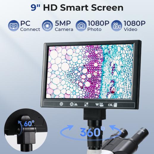 KentFaith Sammansatt mikroskop med en 9" Smart Screen