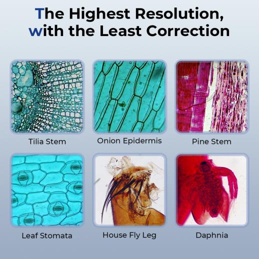 Förpackningar med 2 bredfältskokular (10x, 25x) och 4 Din koppar 195 akromatiska objektivlinser (4X, 10X, 40X, 100X), det finns 8 förstoringsnivåer för vårt kikglassammansättningsmikroskop: 40X, 64X, 100X, 400X, 40X, 4 1000X, 1600X. Med avancerad bildteknik presenterar varje förstoringsnivå tydligt, intrikata bilddetaljer, så att du kan titta på strukturen av svampar och protozoer och till och med detaljerna om cellväggar, membran, organeller samt kärnan i celler.