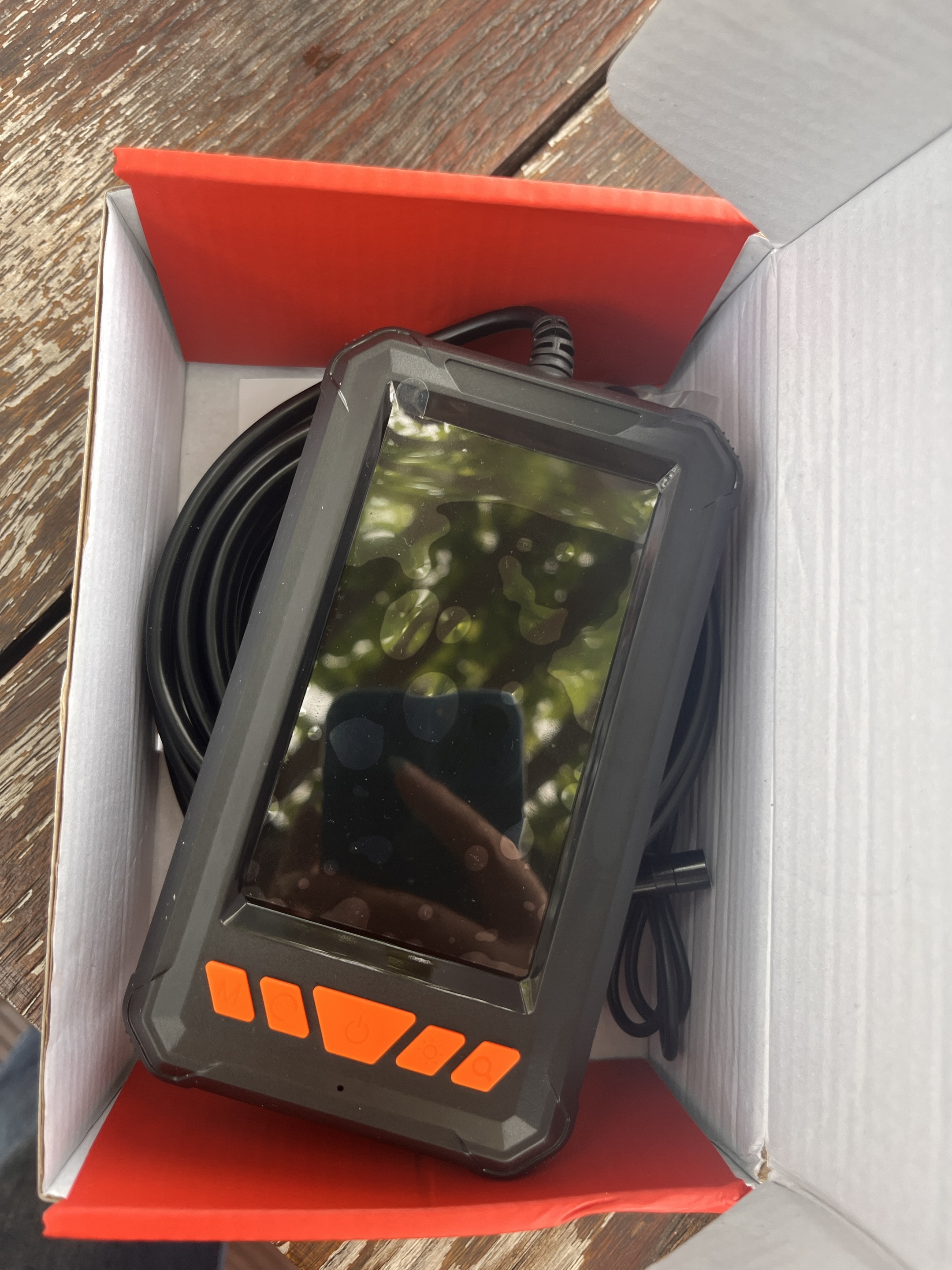 Jag köpte den här kameran efter att flera av mina telefonkontakter gick sönder. Jag använder den för att observera väggar i min elverkstad. Att kunna se vad som händer inuti väggen har sparat mig otaliga timmar av arbete. Kamerans prestanda är utmärkt, i kombination med ljuset. Man kan enkelt se vad som finns inuti en vägg. Jag kan bekräfta att den verkligen är vattentät. Jag hamnade i ett regnväder medan den stod på bakluckan på min lastbil, och jag har inte haft några problem med den sedan dess. Jag rekommenderar den starkt till alla hantverkare.