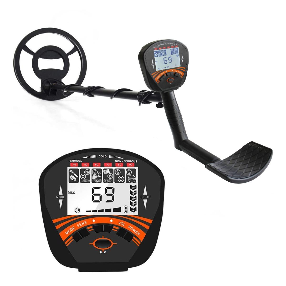 Metalldetektor, fyra driftlägen, justerbar precision, 10 tums vattentät detekteringspanel