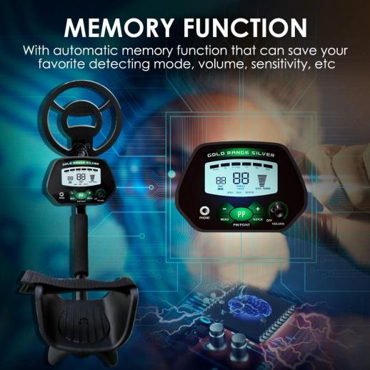 - * [Unik minnesfunktion] Metalldetektorn har fyra uppgraderingslägen (All metal&Discrimination&Notch&Pinpointer). Du kan också anpassa det läge du vill ha, så att du kan hitta det mål du vill ha på kortare tid. Metalldetektorn har också en minnesfunktion, som kan komma ihåg alla inställningar innan den stängs av, därför är det inte nödvändigt att ställa in den igen en gång metalldetektorn används under liknande omständigheter.