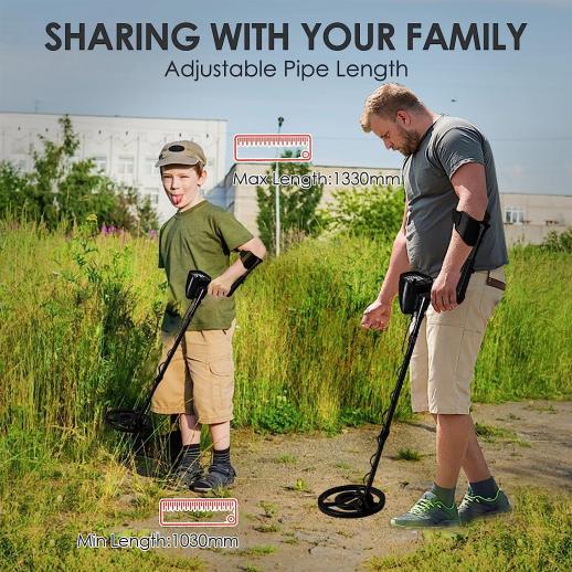 - * 【 Humaniserad design, justerbar stamlängd 】 Längden kan justeras mellan 41 tum och 52 tum, lämplig för vuxna och barn i olika höjder, vilket gör din användning bekvämare. Oavsett om du är en professionell metalldetektor entusiast eller en nybörjare eller ens ett barn, kan du enkelt använda den. Det är en bra present till vänner, familj eller släktingar;