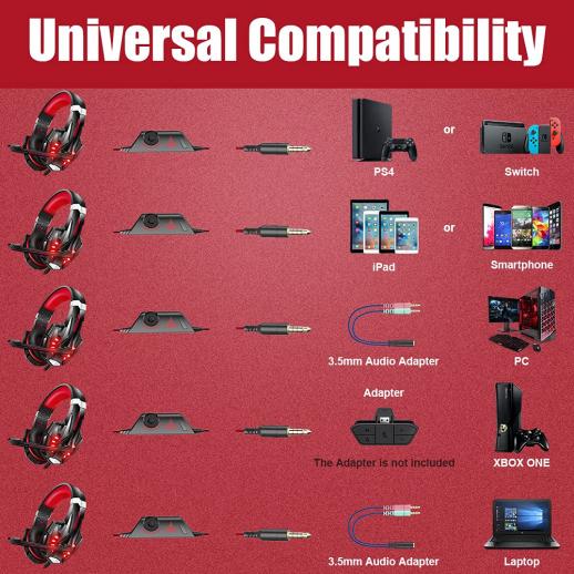 SoulBytes S9 gaming headset Support PS4, PS4 Pro/Slim, New Xbox One, PSP, Nintendo 3DS, PC, Laptop, Computer, Tablet, iPad, Smartphones. Please note that you need an extra Microsoft Adapter(Not Included) while connecting with the old version Xbox one controller.