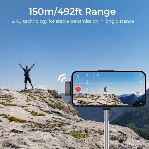 Vloggare och intervjuare på språng, fröjda dig! Vår trådlösa mikrofon ger ett högt, klart ljud med en räckvidd på 150 m, perfekt för utomhusinspelning. Du kan snabbt ställa in för att börja skapa innehåll och röra dig fritt utan begränsningar av kablar. Oavsett hur du spelar in, kommer vår wirelss rever mic alltid att överföra ditt ljud i realtid utan fördröjningar mellan ljud och grafik.