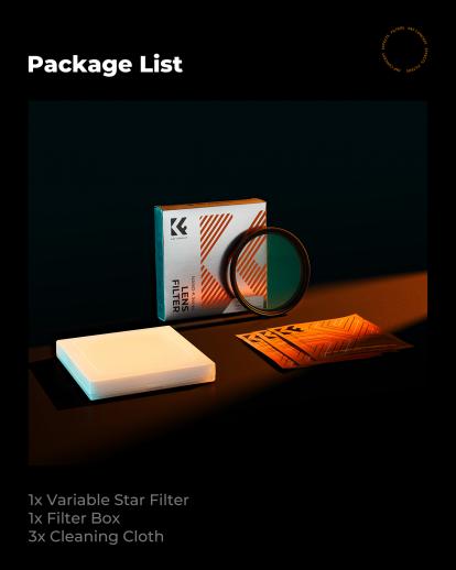 - * 【K&F Concept Advanced Coating garanterar klara och snygga stjärneffekter】 K&F Concept Star Filter använder en avancerad 18-lagers beläggningsteknik för att förbättra ljustransmission, minska reflektioner och spridning, vilket säkerställer en levande och tydlig stjärnljuseffekt.