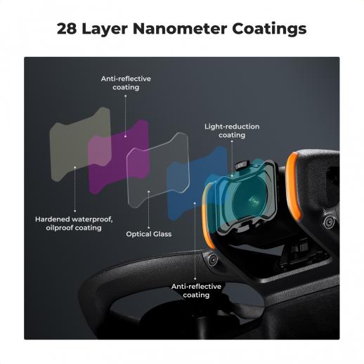 - * 【28 flerskiktsbeläggningar】 Flerskiktsfilter minskar ytterst bländning och bländning, vattentätt, reptåligt, dammtätt och oljebeständigt, minimerar reflektioner från både miljön och filtret, ger verklighetstrogna bilder, skyddar ditt Avata 2-objektiv från allround.