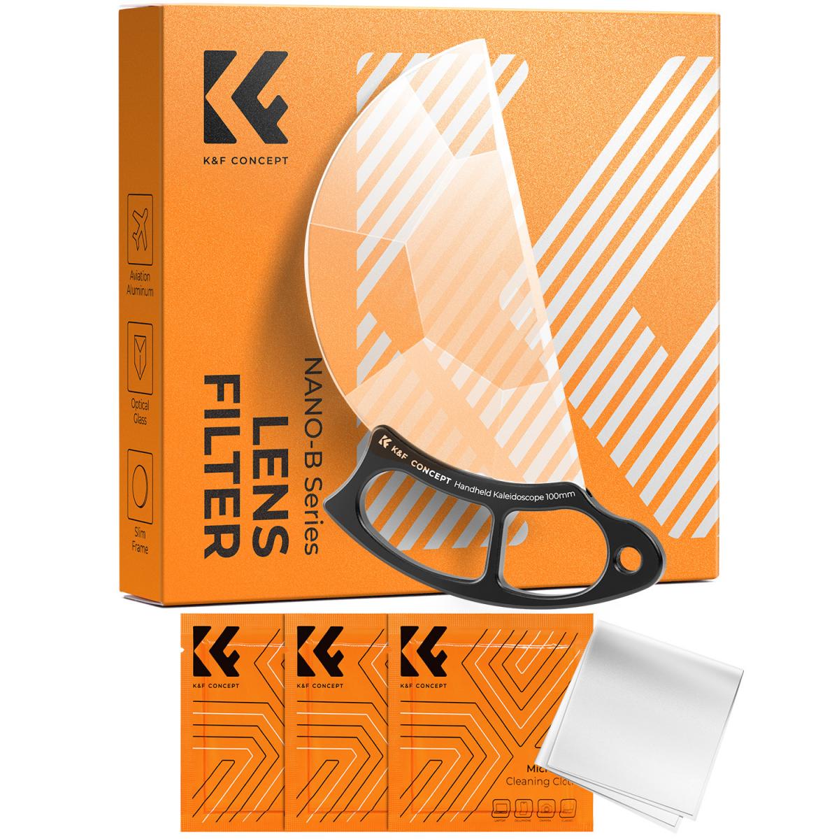 - * 【Kaleidoskopeffekt】 Genom att använda speciell optisk design kan detta handhållna kalejdoskopfilter från K&F Concept skapa unika visuella effekter, producera ljuspunkter som omger motivet eller fokusera och presentera en unik ringformig ljuspunkt.
