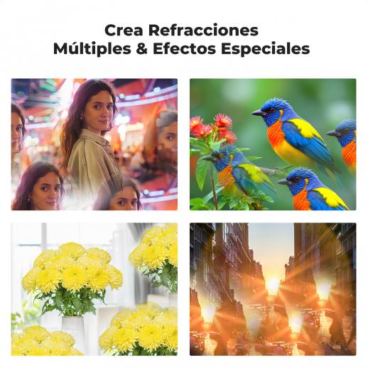 - * 【Konstnärligt skapande】 Detta handhållna kalejdoskopfilter är perfekt för att skapa optiska illusioner och är idealiskt för anpassade fotokreationer. Idealisk för filmer, musikvideor, varumärkesinnehåll, nattscener, bröllop, reklamfilmer.