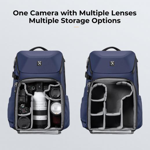 K&F Concept kameraryggsäck 20L stor vattentät kameraväska med främre hårdskal / 15,6" laptop-/stativfack för fotografer, blå