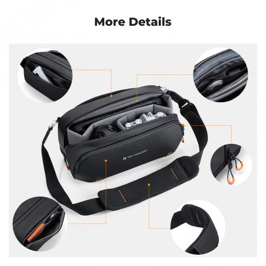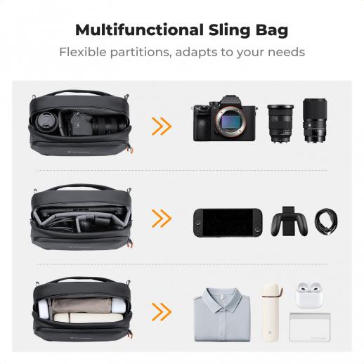 - * 【Mångsidig axelväska】Med sina justerbara fack växlar den här väskan enkelt mellan olika lägen. Den rymmer inte bara kameror utan även Switch, telefon, powerbank, hörlurar och andra dagliga tekniska tillbehör – och uppfyller dina underhållnings- och kreativa behov när som helst och var som helst.