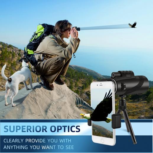12x50 monokulär med smartphonehållare och stativ, FMC-beläggning och BAK4-prisma, vattentät, anti-dimma, lämplig för fågelskådning, jakt, vandring, konsert, resor