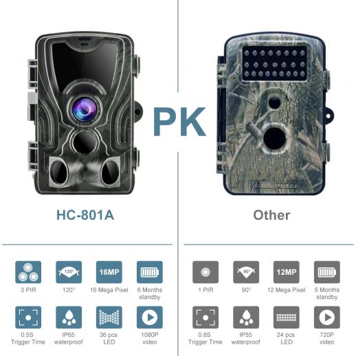 • * 【IP65 vattentätt robust hus】 Med IP65 vattentätt, dammtätt, droppsäkert plasthölje är vår jaktcoutingskamera robust nog för att klara de tuffa arbetsmiljöerna som öken eller regnskog med temperatur från -20-70 ℃, vilket är en oumbärlig garanti för lång livslängd.