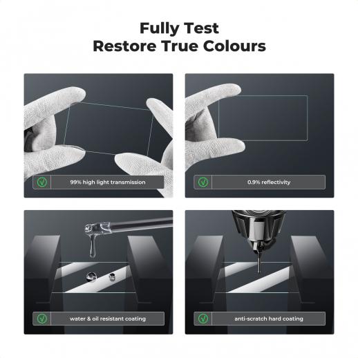 - * 【Crystal Clarity】 Med 99,99 % HD-skärpa bibehåller skärmskyddsfilmen kamerans högupplösta tittarupplevelse, kompletterat med en hydrofob beläggning som stöter bort fingeravtryck och bevarar beröringskänsligheten.
