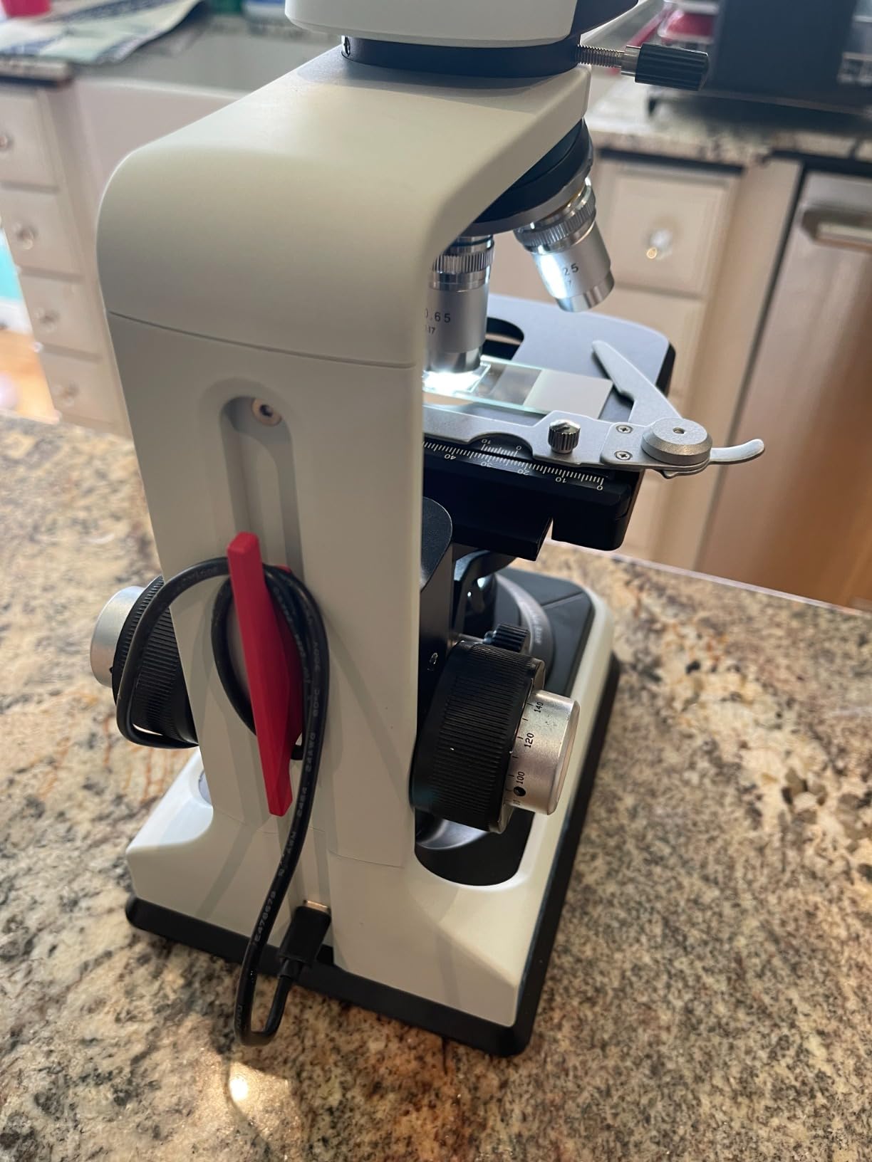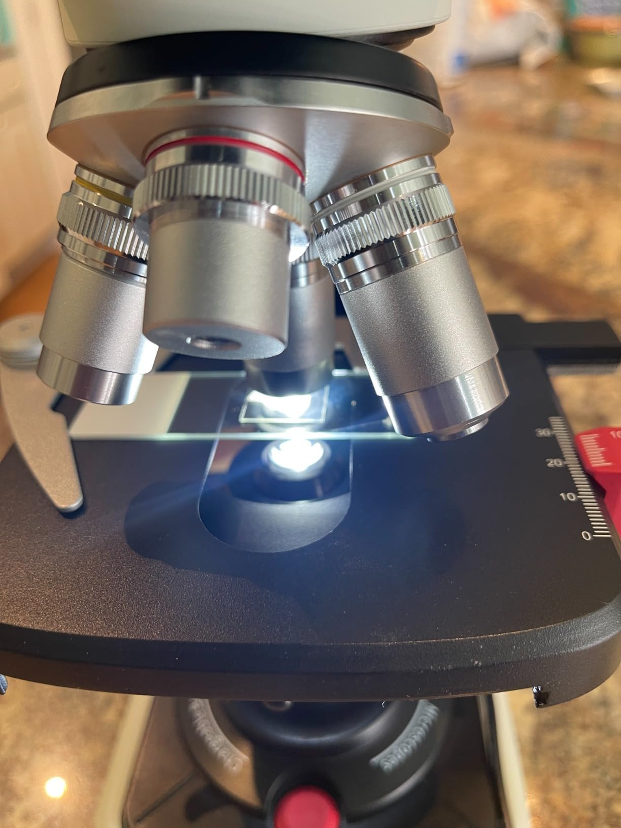 Jag arbetade tidigare som forskare, och detta överträffar vida all utrustning vi använde i anläggningarna. Jag demonstrerar dess användning med mina egna förberedda diabilder från olika cellkulturer. Man kan se detaljerna och funktionaliteten. Okularen behöver inte ens användas. En så stor LCD-skärm känns som en framtidsprodukt.