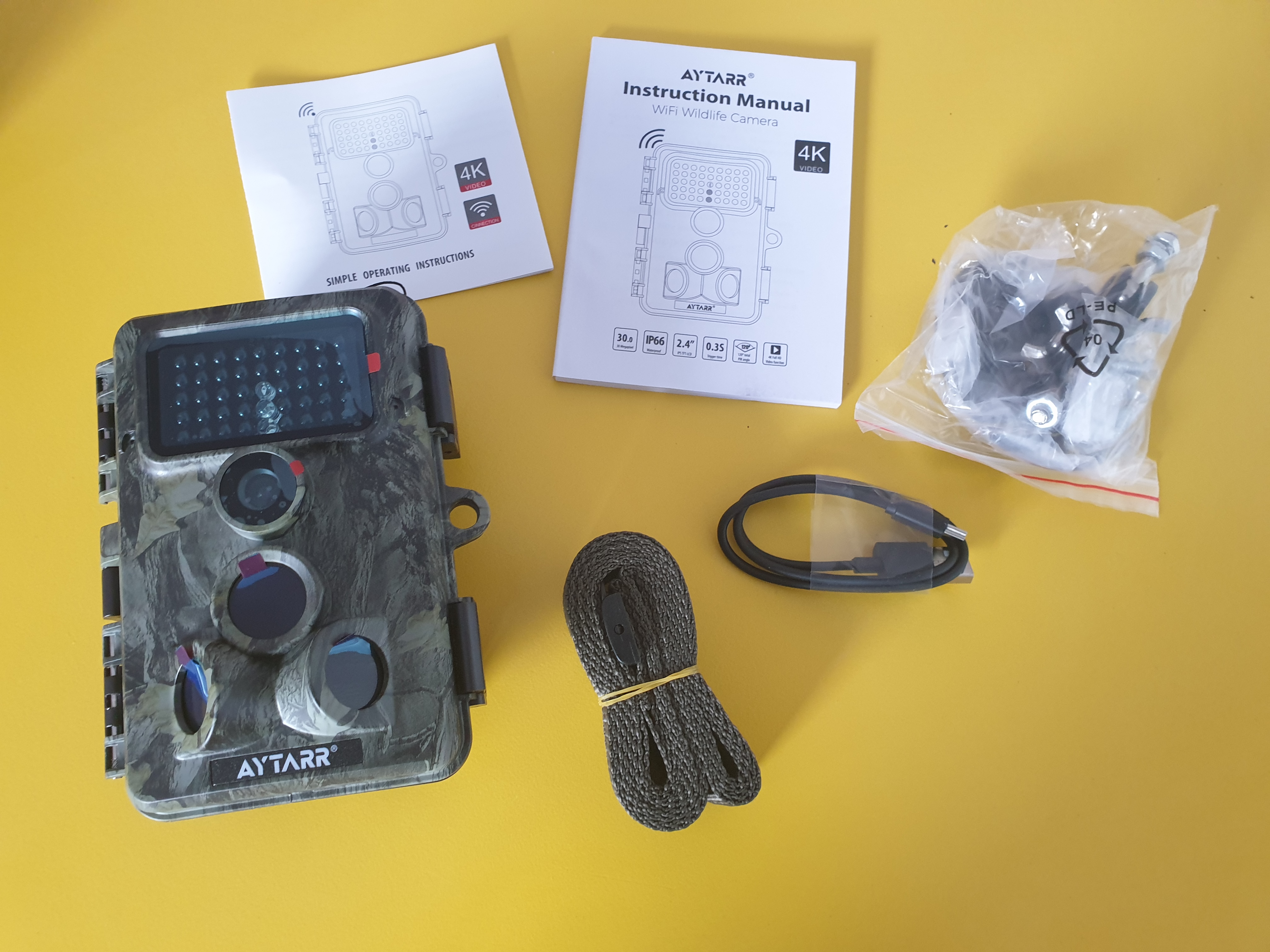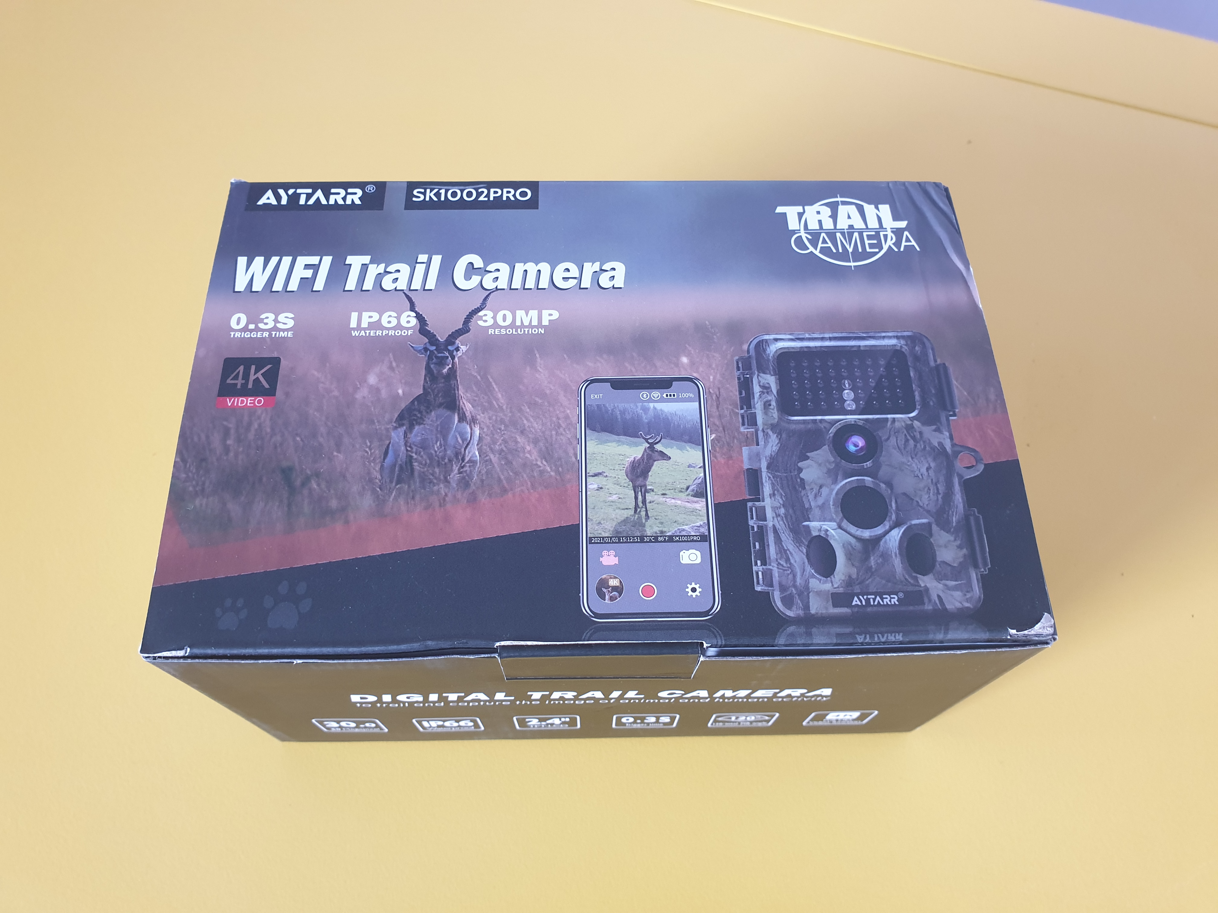 Aytarr 4K 30MP Wildlife-kamera är en riktigt imponerande enhet. Kameran spelar in 4K-video och tar bilder med 30 MP upplösning. Kameran har en betraktningsradie på 120° och mycket lyhörda rörelsesensorer. Inom bråkdelar av en sekund efter att ha rört sig framför kameran spelar den in i 4k. Kamerans rörelsesensorer är bra men du kan justera känsligheten för att passa dina specifika krav, du kan även justera mängder av andra inställningar som t.ex. om man ska ta videor, bilder eller båda vid aktivering av rörelse eller hur lång eller vilken upplösning filmen eller bilderna ska ha. Kameran är IP66-klassad så den klarar allt som den skotska landsbygden kan kasta på sig. Den har också WiFi och Bluetooth vilket betyder att du inte behöver demontera den för att se eller extrahera materialet, du kan helt enkelt ansluta till enheten och komma åt data på distans vilket är utmärkt. Fodralet är starkt och robust och totalt sett är det en imponerande enhet. Valuta för pengarna är bra med kameror med liknande specifikationer som kostar mycket mer och totalt sett en bra enhet för priset.