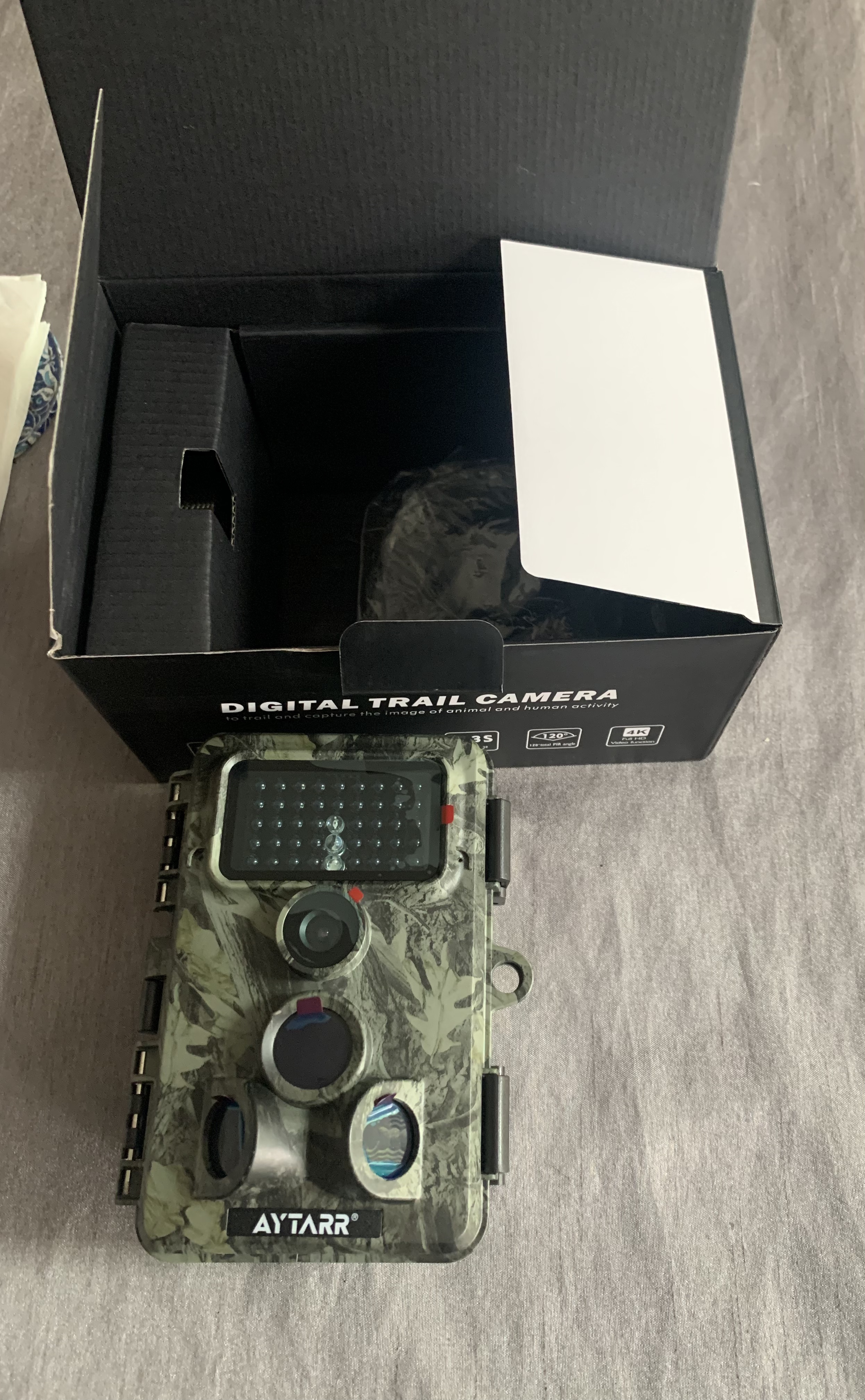 Kameran kom inom 24 timmar efter beställning, vilket är bra ... den främsta anledningen till att jag nu beställer det mesta från Amazon. Verkligen lätt att ställa in, sätt i SD-kortet i full storlek (medföljer ej) och formatera det. 64gb var ungefär 4 timmar av 4k och tusentals stillbilder.Jag kommer att använda kameran för att se vad rävarna gör på min kolonilott och även fånga allt annat som snokar runt i mörkret.Jag lämnade det att spela in i ungefär 1-2 timmar och lyckades fånga några stora fåglar redan. Bildkvaliteten är mycket bra, bättre än förväntat. Jag tog ut SD-kortet och satte det i min TV och tittade på filmen. Överlag är jag nöjd med byggkvaliteten och lätt att använda.