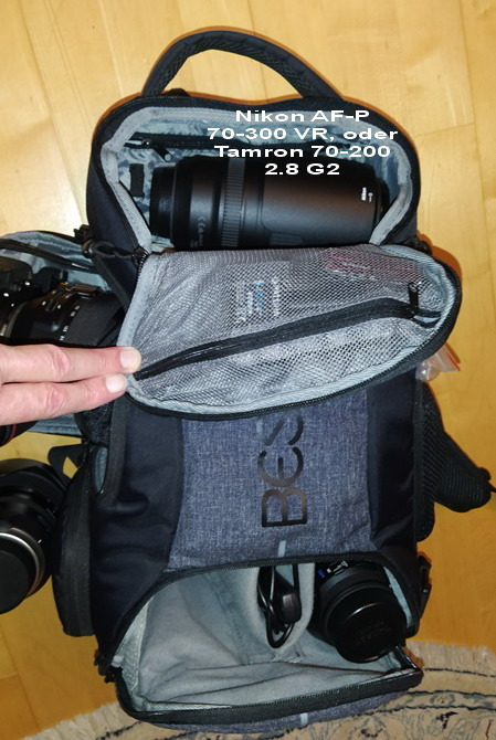 Nu efter 1 1/2 år av intensiv användning (inkl. tur genom öknen, saltöken och djungel) verkade min sammanfattning: ur lådan - ospektakulär, liten. OK. vad har plats: en D850 med påsatt Tamron 35-150mm VC + Tamron 15-30mm 2.8 VC + Tamron 24-70mm 2.8 G2 + antingen 1x Nikon AF-P 70-300mm eller Tamron 70-200mm 2.8 G2 + batterier+filter+t och lite småsaker - om du vill resa med "tungt bagage".(se bilder). Efter dessa intensiva 1 1/2 år ser ryggsäcken nästan likadan ut som när den levererades. Extremt stabil, flexibel, robust och dessutom vattentät, eller snarare regntät – inget kraftigt regn (jag sänkte det inte). Har orkat allt med mig och kommer förhoppningsvis att följa med mig länge. Min bästa väska hittills under de senaste 30 åren. En absolut rekommendation