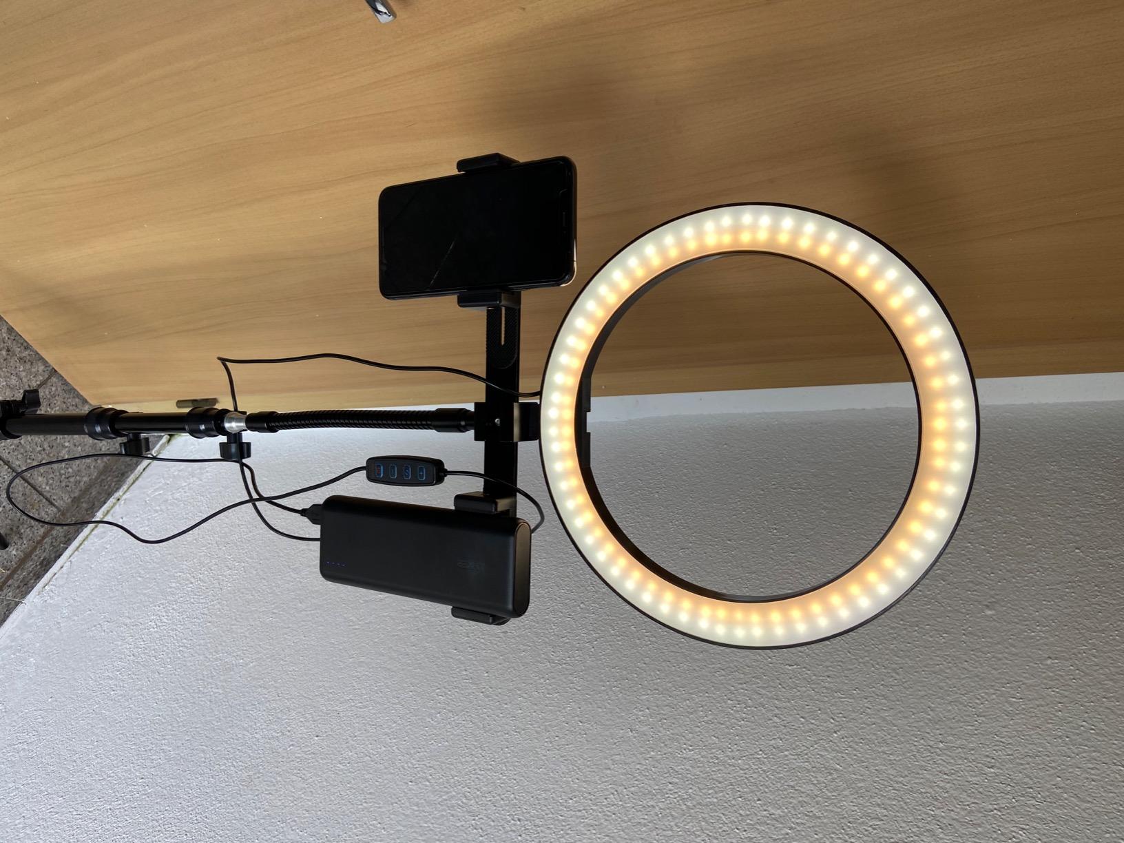 Schönes Komplettset.Alles dabei var ich benötige.Stativ, massiver Schwanenhals aus Metall and Kein Plastik, Ringlicht, Bluetooth Fernbedienung och ene Halteplatte för Zubehör.Zur Strömversorgung wird USB Benötigt. mobil.Klare Kaufempfehlung