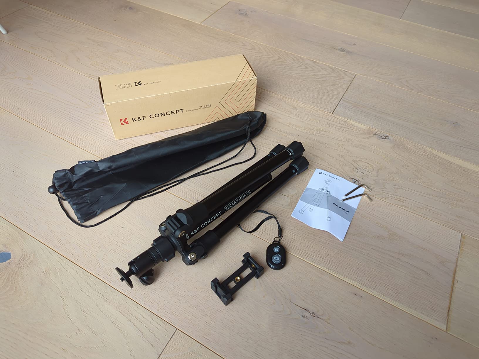 Jag är mycket nöjd med stativets "set". Den går att fälla ihop superkompakt och tar inte mycket plats. Det medföljer flera tillbehör (mobilhållare för tråden, Bluetooth-trigger) och vid behov kan mittstycket tas bort och användas som selfiestick. Min enda kritik är monteringen/demonteringen: jag är inget fan av skruvkork på stativ, så "vänd mig åt höger, så kan du klä av mig, vrid mig till vänster så står jag stadigt." Stativet har redan överlevt de första uppdragen, därav de 5 stjärnorna, men jag kommer aldrig (kunna) helt lita på dessa konstruktioner.