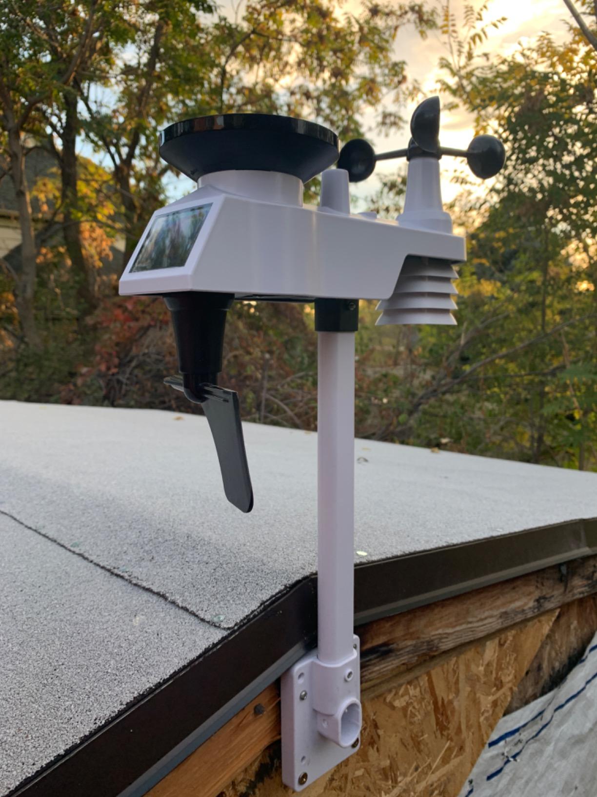 Min väderstation sitter på en stolpe av cederträ högt ovanför min trädgård och informerar mig om de förhållanden jag bör vara medveten om. Från min köksbänk kan jag snabbt ta en titt på de viktiga sakerna jag borde veta innan jag klär på mig för att gå ut och göra sysslor. Min väderstation är där för att försiktigt påminna mig innan jag går ut, precis som min mamma gjorde som barn.