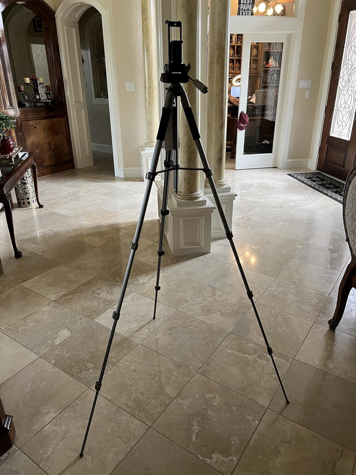 Dies ist das perfekte Stativ für Reisen oder den Einsatz außerhalb des Einsatzortes. Es ist superstabil, selbst wenn die Beine vollständig auf 61 Zoll ausgefahren sind. Mit eingeklappten Beinen ist es mit nur 17 Zoll Länge kompakt. Es ist sehr leicht, wiegt weniger as 3 Pfund, hält aber über 17 Pfund.! Die Beinverriegelungen halten fest und lassen sich einfach verriegeln und lösen. Der verstellbare Kopf är robust och rastet i alla Richtungen sicher ein, obwohl er keineswegs flüssig ist. Bedenken Sie, dieses Stativ kostar 39 €, ist aber in Bezug auf Qualität und Ausstattung ein absolutes Muss. Ich bin Produktfotograf in Unternehmen und find, dass es für 90 % meiner Aufnahmen perfekt ist. Ich kann damit Webfotos in derselben Qualität aufnehmen wie mit einem zehnmal so teuren Stativ und der Einzige, der weiß, welches Stativ ich verwende, bin ich. Jag har en Bluetooth-enhet, två Schnellwechselplatten och en Handyclip-enhet. Das Preis-Leistungs-Verhältnis ist hervorragend und ich kann es wärmstens empfehlen.