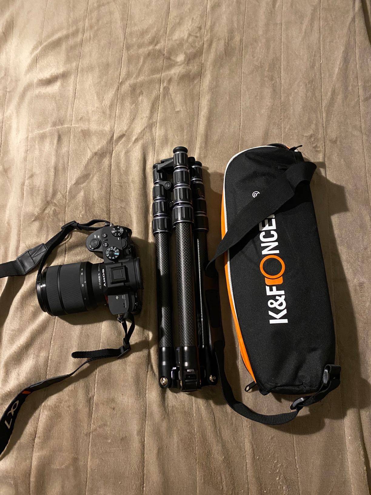 Jag köpte detta K&F Concept Carbon Fiber Tripod till min nya Sony A7III. Det är verkligen lätt och bärbart. Detta stativ uppfyller mitt behov perfekt. Benen är också väldigt lätt justerbara med en snabb sväng och jag gillar kulhuvudet som är riktigt solidt gjort och lätt att justera min kamera. Jag rekommenderar verkligen det bra gjorda och högkvalitativa stativet.